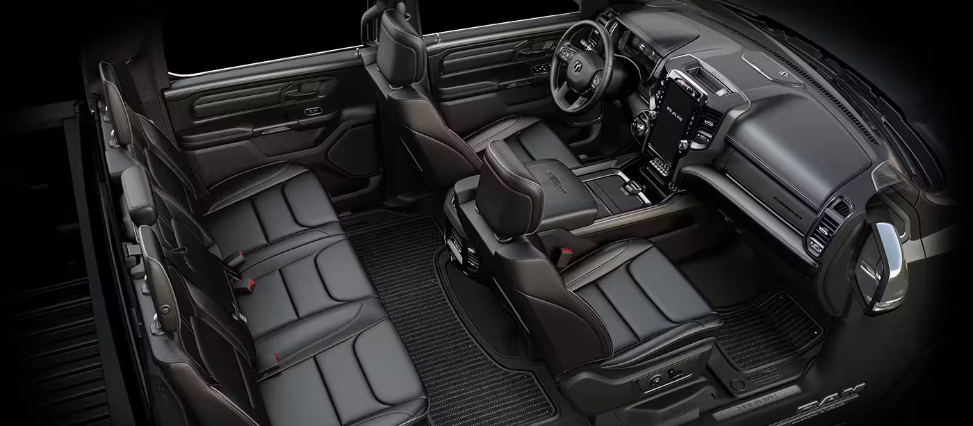 For those who favor vehicles with a gentle touch of opulence, the 2024 Ram 1500 checks all the boxes. The interior upholstery exhibits excellence and refinement, adding a luxurious imagery to this high-performance truck. Perhaps the epitome of this sophistication is the available dual-pane panoramic sunroof. Offering 10 square feet of open sky view, it's perfect for those who enjoy a scenic drive.