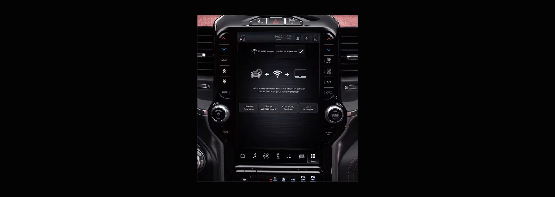 The Ram offers a reconfigurable center console compartment versatile enough to store a 15-inch laptop, file folders, and other essential items in an organized and easily accessible way.