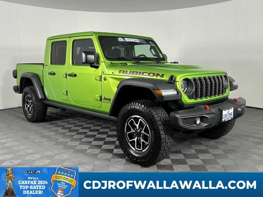 2025 Jeep Gladiator Rubicon â" ready for pavement, trail and everything between. This rugged 4WD pickup pairs a proven 3.6L V6 with rock-ready capability so you can tow, explore and enjoy confident performance wherever the road ends. The Rubicon off-road package brings heavy-duty axles, locking differentials and enhanced suspension for technical terrain, while selectable 4WD modes make transitions effortless. Inside, refined touches elevate every drive: comfortable leather seats, a heated steering wheel for cold mornings, and automatic climate control to maintain the perfect cabin temperature. The interior balances utility and comfort so long trips and daily commutes both feel premium. Stay entertained and informed with XM Radio and an intuitive infotainment layout built for easy use on the go. Built for adventure without sacrificing convenience, this Jeep Gladiator Rubicon offers the capability of a serious off-roader along with creature comforts for everyday life. Whether youâre hauling gear to the campsite or navigating city streets, this Jeep delivers capability, comfort and style. Schedule a test drive today and experience the 2025 Jeep Gladiator Rubiconâs combination of power, technology and trail-ready confidence.