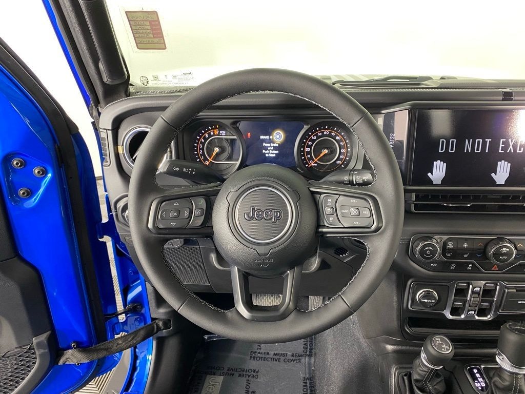 Convenience Group: Emergency/assistance Call; Front Door Locks 2-Door Passive Entry; 2-Piece Body Color Fender Flares; Remote Start System; Cluster 7.0 TFT Color Display; Universal Garage Door Opener; Daytime Running Lamp System; Heated Front Seats; Air Conditioning with Auto Temp Control; Heated Steering Wheel; Corning Gorilla Glass. Quick Order Package 24Q High Tide: Leather Wrapped Shift Knob; Premium Door Trim Panel; LT255/75R17C Tires; Power 4-Way Passenger Lumbar Adjust; Power 4-Way Driver Lumbar Adjust; 2-Piece Body Color Fender Flares; High Tide Tailgate and Hood Decals; Power Adjust 8-Way Front Passenger Seat; Integrated Radar Camera Module (IRCM); Security Alarm; Rear Armrest with Cupholder Seat; Hard Seat Back; Advanced Brake Assist; Willys Suspension; Body Color 3-Piece Hard Top; Automatic Headlamps; Deep Tint Sunscreen Windows; 17 X 7.5 Painted Black Wheels; Premium McKinley Trimmed Seats; Full Speed Forward Collision Warning Plus; 97 MPH Vehicle Max Speed Calibration; Power Heated Mirrors; Daytime Running Lamp System; High Tide; Power Adjust 8-Way Driver Seat; Full Length Floor Console Premium Armrest; Premium Wrapped Steering Wheel; Leather Wrapped Park Brake Handle; Sun Visors with Illuminated Vanity Mirrors. LED Headlamp and Fog Lamp Group: Daytime Running Lamps LED Accents; Front LED Fog Lamps; LED Premium Reflector Headlamps. Hydro Blue Pearlcoat. MOPAR Spray in Bedliner. MOPAR American Flag Hood Decal. **Equipment listed is based on original vehicle build and subject to change. Please confirm the accuracy of the included equipment by calling the dealer prior to purchase.**