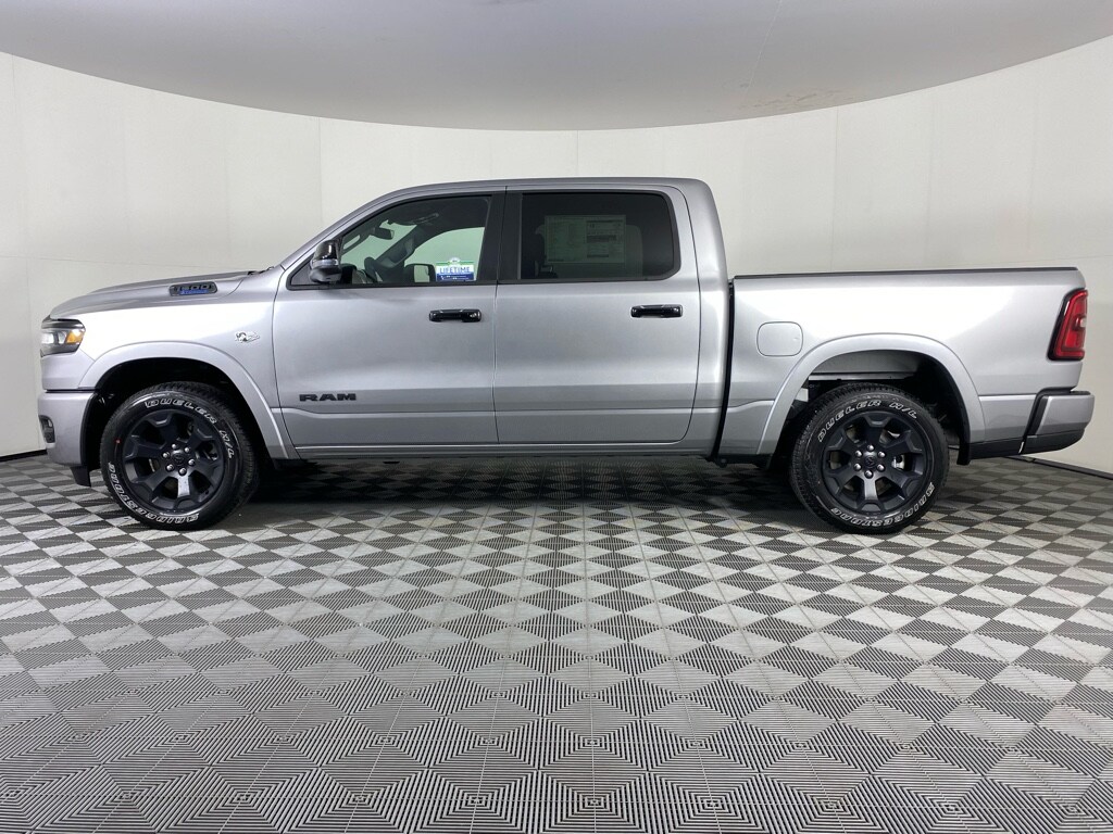 Quick Order Package 27Z Big Horn. Big Horn Level 2 Equipment Group: Google Android Auto; SiriusXM Radio Service; USB Host Flip; Power Adjustable Pedals; Leather Wrapped Steering Wheel; Integrated Voice Command with Bluetooth; 12 Touchscreen Display; Glove Box Lamp; Auto Power-Folding Mirrors; 115V Auxiliary Rear Power Outlet; Media Hub with 2 Charge Only USBs; Heated Front Seats; Security Alarm; Black Premium Power Mirrors; Apple CarPlay; Premium Overhead Console; 9 Amplified Speakers with Subwoofer; Disassociated Touchscreen Display; Body Color Fender Flares; Remote Tailgate Release; 115V Auxiliary Power Outlet; LED Dome Lamp with On/off Switch; Universal Garage Door Opener; 2nd Row in Floor Storage Bins; Sun Visors with Illuminated Vanity Mirrors; LED Footwell Lighting; Rear Window Defroster; Integrated Center Stack Radio; Rear View Auto Dim Mirror; Rear Power Sliding Window; Connectivity - US/Canada; GPS Navigation; 4G LTE Wi-Fi Hot Spot; GPS Antenna Input; Overhead LED Lamps; Exterior Mirrors with Heating Element; Auto Dim Exterior Driver Mirror; SiriusXM with 360L; Global Telematics Box Module; Connected Travel and Traffic Services; Heated Steering Wheel; Configurable Drive Mode; 400W Inverter; HD Radio; Deluxe Cloth Bucket Seats; Uconnect 5 Navigation with 12.0 Display Radio; Exterior Mirrors with Supplemental Signals; Steering Wheel Mounted Audio Controls; Exterior Mirrors Courtesy Lamps; Air Conditioning ATC with Dual Zone Control; Cluster 7.0 TFT Color Display; Convex Wide-Angle Exterior Mirror Insert. Night Edition: 275/55R20 OWL All Season Tires; Accent Color Premium Power Mirrors; Exterior Mirrors with Supplemental Signals; Black Headlamp Bezels; Exterior Mirrors Courtesy Lamps; Grille Black Surround Black Mesh; Auto Power-Folding Mirrors; Exterior Mirrors with Heating Element; 20 X 9.0 Aluminum Painted Clad Wheels; Auto Dim Exterior Driver Mirror; Black Exterior Truck Badging; Anti-Spin Differential Rear Axle; Accent Color Door Handles; Accent Color Tailgate Handle; Black Interior Accents; Dual Exhaust with Black Tips; Body Color Front Bumper; Convex Wide-Angle Exterior Mirror Insert; Body Color Rear Bumper with Step Pads; Black Tail Lamp Bezels; RAM Grille Badge - Black; Black Painted Exterior Mirrors Caps. Quick Order Package 23Z Big Horn. 9 Amplified Speakers with Subwoofer. Anti-Spin Differential Rear Axle. Trailer Brake Control. Billet Silver Metallic CC. Rear Underseat Compartment Storage. MOPAR Front and Rear Rubber Floor Mats. 3.92 Rear Axle Ratio. **Equipment listed is based on original vehicle build and subject to change. Please confirm the accuracy of the included equipment by calling the dealer prior to purchase.**