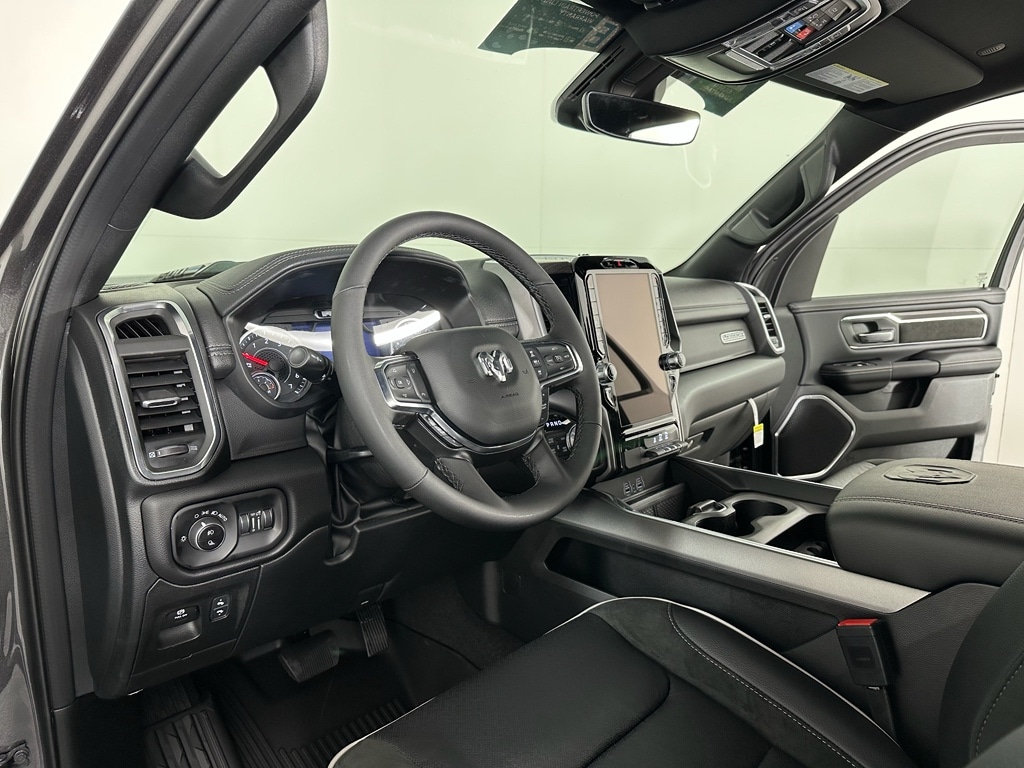 Quick Order Package 27H Laramie. Laramie Level 1 Equipment Group: Remote Tailgate Release; Rain Sensitive Windshield Wipers. Night Edition: Black Headlamp Bezels; Auto Power-Folding Mirrors; 22 X 9 Forged Aluminum Wheels; Exterior Mirrors with Heating Element; Proximity Approach/departure Lamps; Auto Dim Exterior Driver Mirror; Accent Color Door Handles; Black Interior Accents; Body Color Front Bumper; Grille Surround 3 Black Texture 2 Black; Body Color Rear Bumper with Step Pads; RAM Grille Badge - Black; Black Painted Exterior Mirrors Caps; Exterior Mirrors Approach Lamps; Accent Color Premium Power Mirrors; Exterior Mirrors with Supplemental Signals; Sport Performance Hood; Exterior Mirrors Courtesy Lamps; Black Exterior Truck Badging; Accent Color Tailgate Handle; Exterior Mirrors with Memory; Dual Exhaust with Black Tips; Convex Wide-Angle Exterior Mirror Insert; Black Tail Lamp Bezels. Off Road Group: Off Road Decals; Steering Gear Skid Plate; Falken Brand Tires; Raised Ride Height; 285/45R22XL BSW All Terrain Tires; Front Extra Heavy Duty Shock Absorbers; 20 Full Size Aluminum Spare Wheel; Rear Extra Heavy Duty Shock Absorbers; Full Size Spare Tire; Tow Hooks; E-Locker Rear Axle; Transfer Case Skid Plate; Fuel Tank Skid Plate; Selec-Speed Control. 22 X 9 Forged Aluminum Wheels. E-Locker Rear Axle. Granite Crystal Met CC. MOPAR Front and Rear Rubber Floor Mats. 3.92 Rear Axle Ratio. Rear Wheelhouse Liners. **Equipment listed is based on original vehicle build and subject to change. Please confirm the accuracy of the included equipment by calling the dealer prior to purchase.**