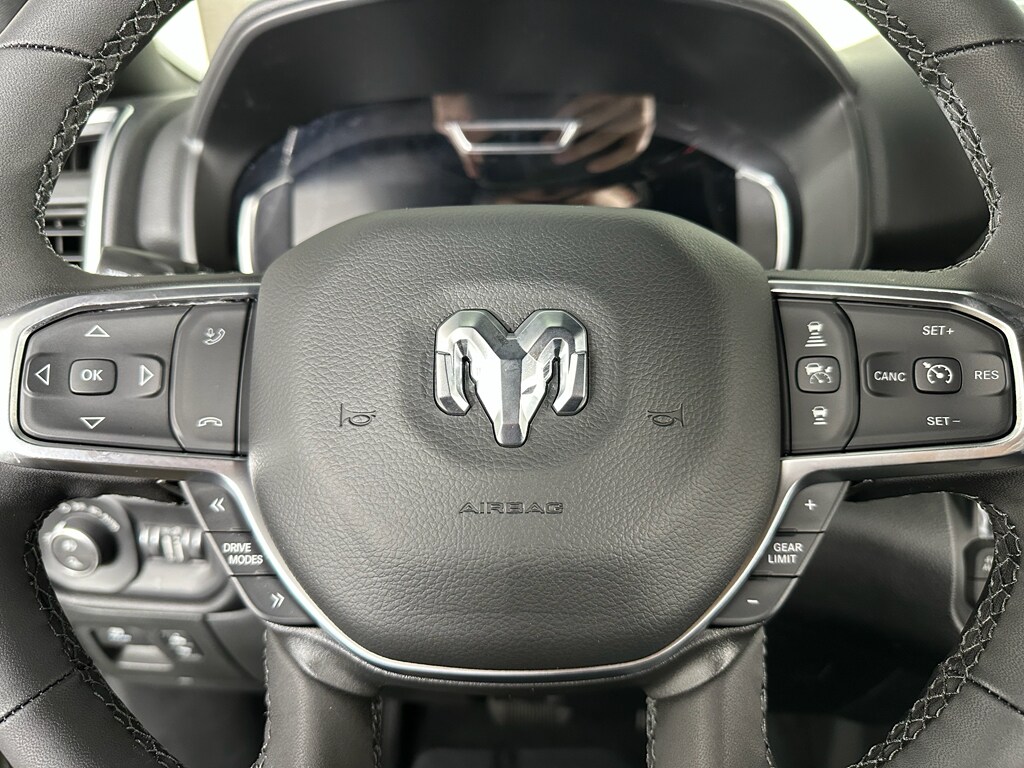 Quick Order Package 21Z Big Horn. Big Horn Level 2 Equipment Group: Google Android Auto; SiriusXM Radio Service; USB Host Flip; Power Adjustable Pedals; Leather Wrapped Steering Wheel; Integrated Voice Command with Bluetooth; 12 Touchscreen Display; Glove Box Lamp; Auto Power-Folding Mirrors; 115V Auxiliary Rear Power Outlet; Media Hub with 2 Charge Only USBs; Heated Front Seats; Security Alarm; Black Premium Power Mirrors; Apple CarPlay; Premium Overhead Console; 9 Amplified Speakers with Subwoofer; Disassociated Touchscreen Display; Body Color Fender Flares; Remote Tailgate Release; 115V Auxiliary Power Outlet; LED Dome Lamp with On/off Switch; Universal Garage Door Opener; 2nd Row in Floor Storage Bins; Sun Visors with Illuminated Vanity Mirrors; LED Footwell Lighting; Rear Window Defroster; Integrated Center Stack Radio; Rear View Auto Dim Mirror; Rear Power Sliding Window; Connectivity - US/Canada; GPS Navigation; 4G LTE Wi-Fi Hot Spot; GPS Antenna Input; Overhead LED Lamps; Exterior Mirrors with Heating Element; Auto Dim Exterior Driver Mirror; SiriusXM with 360L; Global Telematics Box Module; Connected Travel and Traffic Services; Heated Steering Wheel; Black Exterior Mirrors; Configurable Drive Mode; 400W Inverter; HD Radio; Deluxe Cloth Bucket Seats; Uconnect 5 Navigation with 12.0 Display Radio; Exterior Mirrors with Supplemental Signals; Steering Wheel Mounted Audio Controls; Exterior Mirrors Courtesy Lamps; Air Conditioning ATC with Dual Zone Control; Cluster 7.0 TFT Color Display; Convex Wide-Angle Exterior Mirror Insert. Night Edition. Towing Technology Group: Trailer Hitch Line-Up Assist. Protection Group: Steering Gear Skid Plate; Tow Hooks; Transfer Case Skid Plate; Fuel Tank Skid Plate. Trailer Tow Group: Trailer Light Check; Trailer Brake Control; Accent Color Tailgate Handle; Trailer Reverse Steering Control; Trailer Tire Pressure Monitoring System; Black Trailer Tow Power Mirrors. Quick Order Package 23Z Big Horn. 9 Amplified Speakers with Subwoofer. MOPAR Black Tubular Side Steps. E-Locker Rear Axle. Surround View Camera System. Trailer Brake Control. Cluster 12 TFT Color Display. Black Trailer Tow Power Mirrors. 3.92 Rear Axle Ratio. Rear Wheelhouse Liners. **Equipment listed is based on original vehicle build and subject to change. Please confirm the accuracy of the included equipment by calling the dealer prior to purchase.**