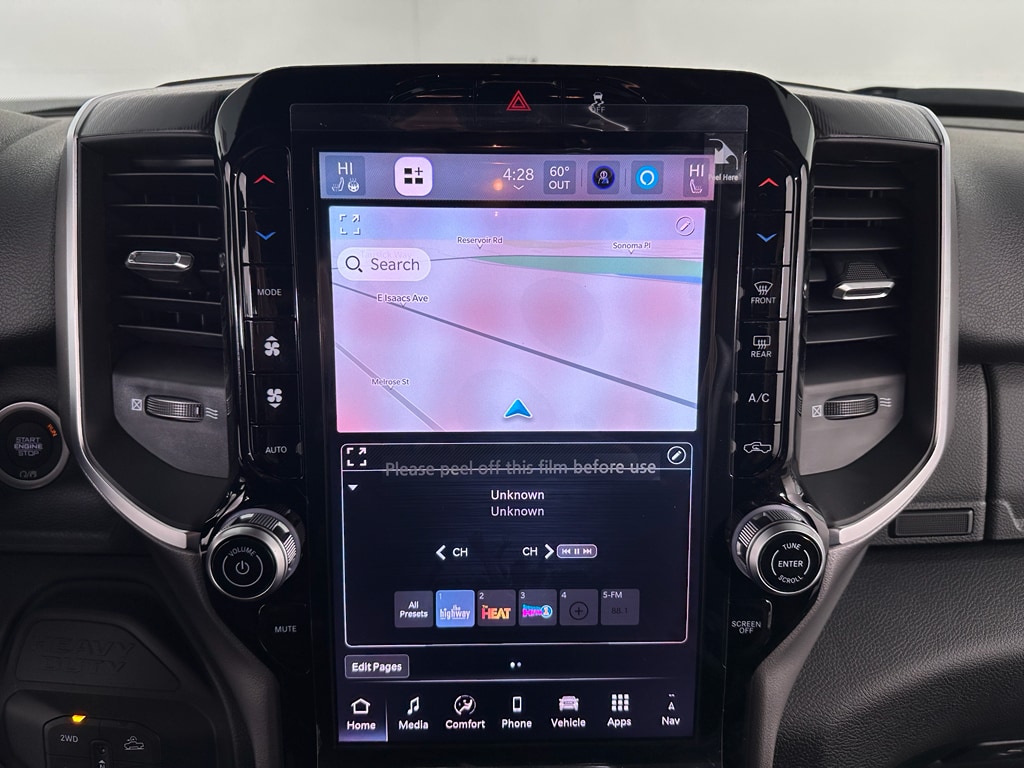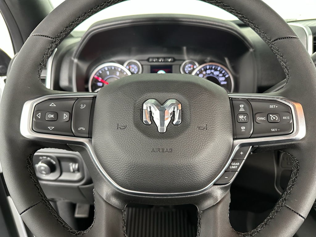 Quick Order Package 24Z Big Horn. Cold Weather Group: Engine Block Heater; MOPAR Winter Front Grille Cover. Night Edition: Firestone Brand Tires; Gloss Black Nostrils/mic Black Grille; LT285/60R20E OWL On/off Road Tires; Black Exterior Truck Badging; 20 X 8.0 Black Painted Aluminum Wheels; Body Color Grille-Surround; Black Interior Accents; Black Wheel Center Hub; Painted Front Bumper; Painted Rear Bumper. Off Road Package: Front Performance Tuned Shock Absorbers; Transfer Case Skid Plate Shield; Hill Assist; Rear Performance Tuned Shock Absorbers. Big Horn Level 1 Plus Equipment Group: Google Android Auto; SiriusXM Radio Service; For Details. Visit DriveUconnect.com; For More Info. Call 800-643-2112; Integrated Voice Command with Bluetooth; Emergency Vehicle Alert System (EVAS); 12 Touchscreen Display; Glove Box Lamp; Auto Power-Folding Mirrors; Footwell Courtesy Lamp; Anti-Spin Differential Rear Axle; Mirror Running Lights; MOPAR Deployable Bed Step; Alexa Built-In; Apple CarPlay; Power-Adjustable Convex Aux Mirrors; Forward and Reverse Utility Lights; Locking Lower Glove Box; Remote Start System; 9 Alpine Speakers with Subwoofer; Disassociated Touchscreen Display; Dual Glove Boxes; 2nd Row in Floor Storage Bins; Rear View Auto Dim Mirror; Rear Dome with On/off Switch Lamp; LED Bed Lighting; Connectivity - US/Canada; GPS Navigation; 4G LTE Wi-Fi Hot Spot; GPS Antenna Input; Exterior Mirrors with Heating Element; SiriusXM with 360L; Global Telematics Box Module; Connected Travel and Traffic Services; Foam Bottle Insert (door Trim Panel); Black Exterior Mirrors; Big Horn Instrument Panel Badge; Off-Road Info Pages; Selectable Tire Fill Alert; Trailer Tow Pages; HD Radio; Uconnect 5 Navigation with 12.0 Display Radio; Power Heated Folding Telescopic Mirrors; Exterior Mirrors with Supplemental Signals; Steering Wheel Mounted Audio Controls; Exterior Mirrors Courtesy Lamps; Air Conditioning ATC with Dual Zone Control; MOPAR Spray in Bedliner; Power Adjust Mirrors; Luxury Steering Wheel; Power Telescoping Mirrors. Heated Seats and Wheel Group: Heated Front Seats; Heated Steering Wheel. Quick Order Package 2UZ Big Horn. 5th Wheel/gooseneck Towing Prep Group. Anti-Spin Differential Rear Axle. Premium Cloth Bucket Seats. Remote Start System. Instrument Panel Mounted Auxiliary Switches. MOPAR Front and Rear Rubber Floor Mats. Rear Wheelhouse Liners. Power 2-Way Driver Lumbar Adjust. Clearance Lamps. Transfer Case Skid Plate Shield. **Equipment listed is based on original vehicle build and subject to change. Please confirm the accuracy of the included equipment by calling the dealer prior to purchase.**
