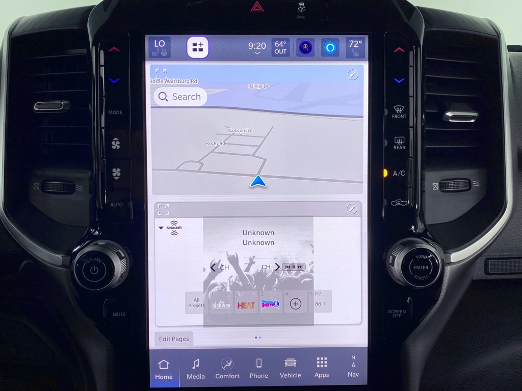 Quick Order Package 24Z Big Horn. Cold Weather Group: Engine Block Heater; MOPAR Winter Front Grille Cover. Night Edition. Big Horn Level 1 Plus Equipment Group: Google Android Auto; SiriusXM Radio Service; For Details Visit DriveUconnect.com; For More Info. Call 800-643-2112; Integrated Voice Command with Bluetooth; Emergency Vehicle Alert System (EVAS); 12 Touchscreen Display; Glove Box Lamp; Auto Power-Folding Mirrors; Footwell Courtesy Lamp; Mirror Running Lights; MOPAR Deployable Bed Step; Alexa Built-In; Apple CarPlay; Power-Adjustable Convex Aux Mirrors; Forward and Reverse Utility Lights; Locking Lower Glove Box; Remote Start System; 9 Alpine Speakers with Subwoofer; Disassociated Touchscreen Display; Dual Glove Boxes; 2nd Row in Floor Storage Bins; Rear View Auto Dim Mirror; Rear Dome with On/off Switch Lamp; LED Bed Lighting; Connectivity - US/Canada; GPS Navigation; 4G LTE Wi-Fi Hot Spot; GPS Antenna Input; Exterior Mirrors with Heating Element; SiriusXM with 360L; Global Telematics Box Module; Connected Travel and Traffic Services; Foam Bottle Insert (door Trim Panel); Black Exterior Mirrors; Big Horn Instrument Panel Badge; Off-Road Information Pages; Selectable Tire Fill Alert; Trailer Tow Pages; HD Radio; Uconnect 5 Navigation with 12.0 Display Radio; Power Heated Fold Telescopic Mirrors; Exterior Mirrors with Supplemental Signals; Steering Wheel Mounted Audio Controls; Exterior Mirrors Courtesy Lamps; Air Conditioning ATC with Dual Zone Control; MOPAR Spray in Bedliner; Power Adjust Mirrors; Luxury Steering Wheel; Power Telescoping Mirrors. Heated Seats and Wheel Group: Heated Front Seats; Heated Steering Wheel. Quick Order Package 2UZ Big Horn. 5th Wheel/gooseneck Towing Prep Group. Premium Cloth Bucket Seats. 50 Gallon Fuel Tank. Remote Start System. Molten Red Pearlcoat. Instrument Panel Mounted Auxiliary Switches. MOPAR Front and Rear Rubber Floor Mats. Rear Wheelhouse Liners. Clearance Lamps. Power 2-Way Driver Lumbar Adjust. **Equipment listed is based on original vehicle build and subject to change. Please confirm the accuracy of the included equipment by calling the dealer prior to purchase.**