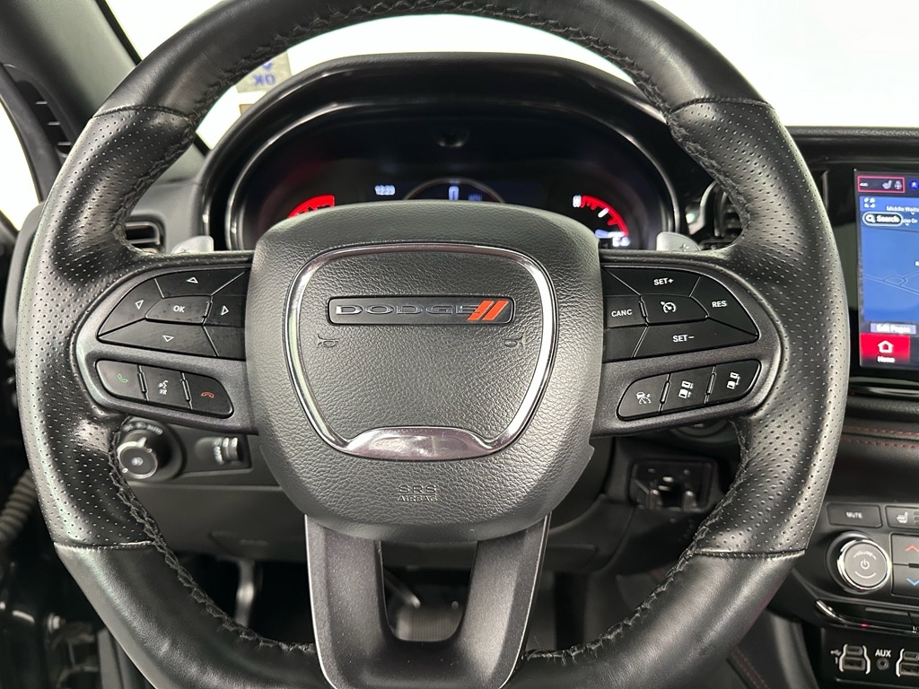 with XM/Sirus Satellite Radio you are no longer restricted by poor quality local radio stations while driving this mid-size suv. Anywhere on the planet, you will have hundreds of digital stations to choose from. Enjoy the heated seats in this vehicle you will never buy a vehicle without them. Everyone loves the comfort of having a warm seat on those cold winter days. See what's behind you with the back up camera on this mid-size suv. Apple CarPlay: Seamless smartphone integration for this vehicle - stay connected and entertained on the go! The leather seats in it are a must for buyers looking for comfort, durability, and style. The Dodge Durango features a hands-free Bluetooth phone system. It is pure luxury with a heated steering wheel. This model has auto-adjust speed for safe following. This vehicle offers Android Auto for seamless smartphone integration. You'll never again be lost in a crowded city or a country region with the navigation system on this 2023 Dodge Durango .
