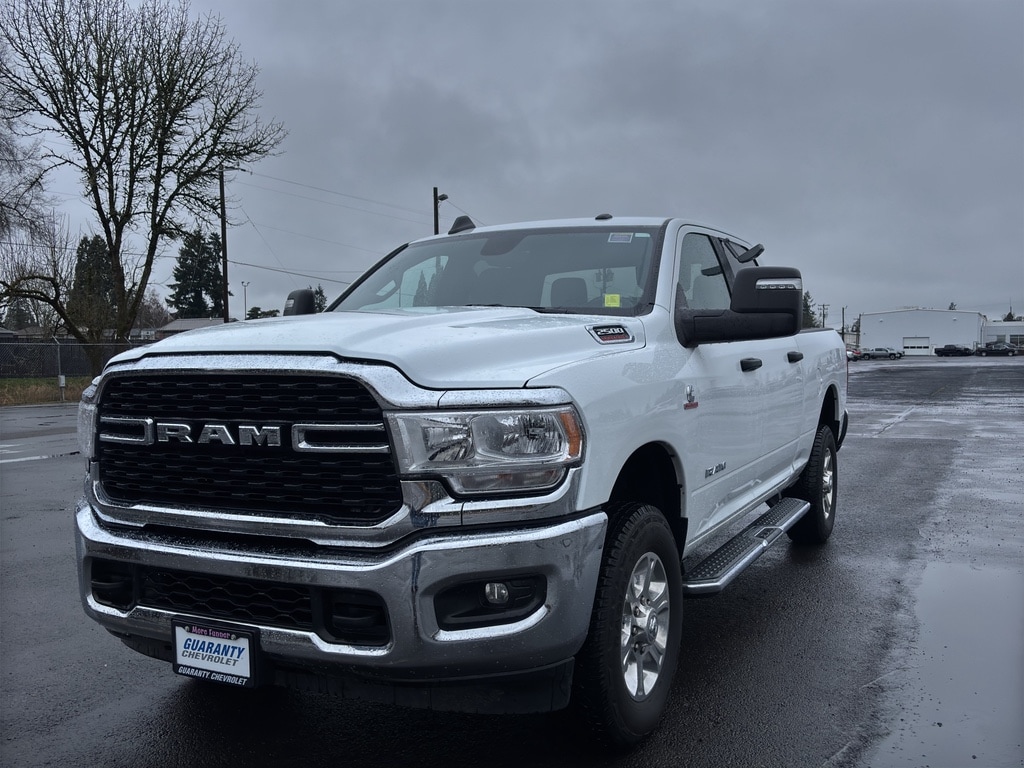 Take command of the road with this rugged 2024 Ram 2500 Big Horn, a dependable work-ready truck located in Junction City, OR. With just 38,309 miles and powerful 4WD, this heavy-duty Ram pairs a proven 6-cylinder, 6.7L diesel engine with robust towing and hauling capability for contractors, ranchers, and weekend adventurers alike. The Big Horn trim balances comfort and utility features include Apple CarPlay and Android Auto for seamless smartphone integration, XM Radio for long-haul entertainment, and a CARFAX Clean Report confirming vehicle history integrity. This unit is a CARFAX 1-Owner vehicle, reflecting careful ownership and timely maintenance. Inside, expect a comfortable cabin with durable finishes and user-friendly technology designed for long drives. Safety and reliability are priorities on every job site and family trip. With 4WD engagement, this truck tackles mud, snow, and steep terrain with confidence. We're offering the best price on this 2024 Ram 2500 Big Horn in Junction City, OR excellent value for a low-mileage, one-owner diesel truck. Schedule a test drive today to experience the torque and control of the 6.7L Cummins diesel, review the CARFAX report in person, and see why this Ram 2500 Big Horn is the smart choice for heavy-duty performance and long-term reliability.
